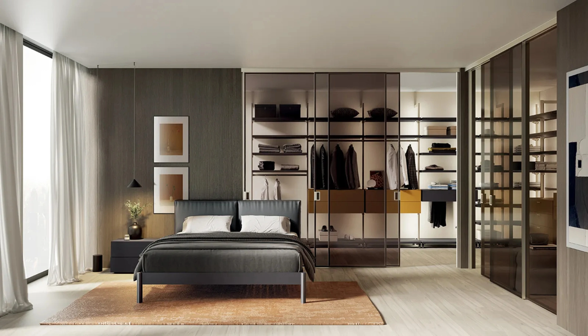 Se desideri una zona del riposo arredata al meglio, scegli l'armadio Axial System Cabina Armadio laccata con ante scorrevoli di Dielle Modus!