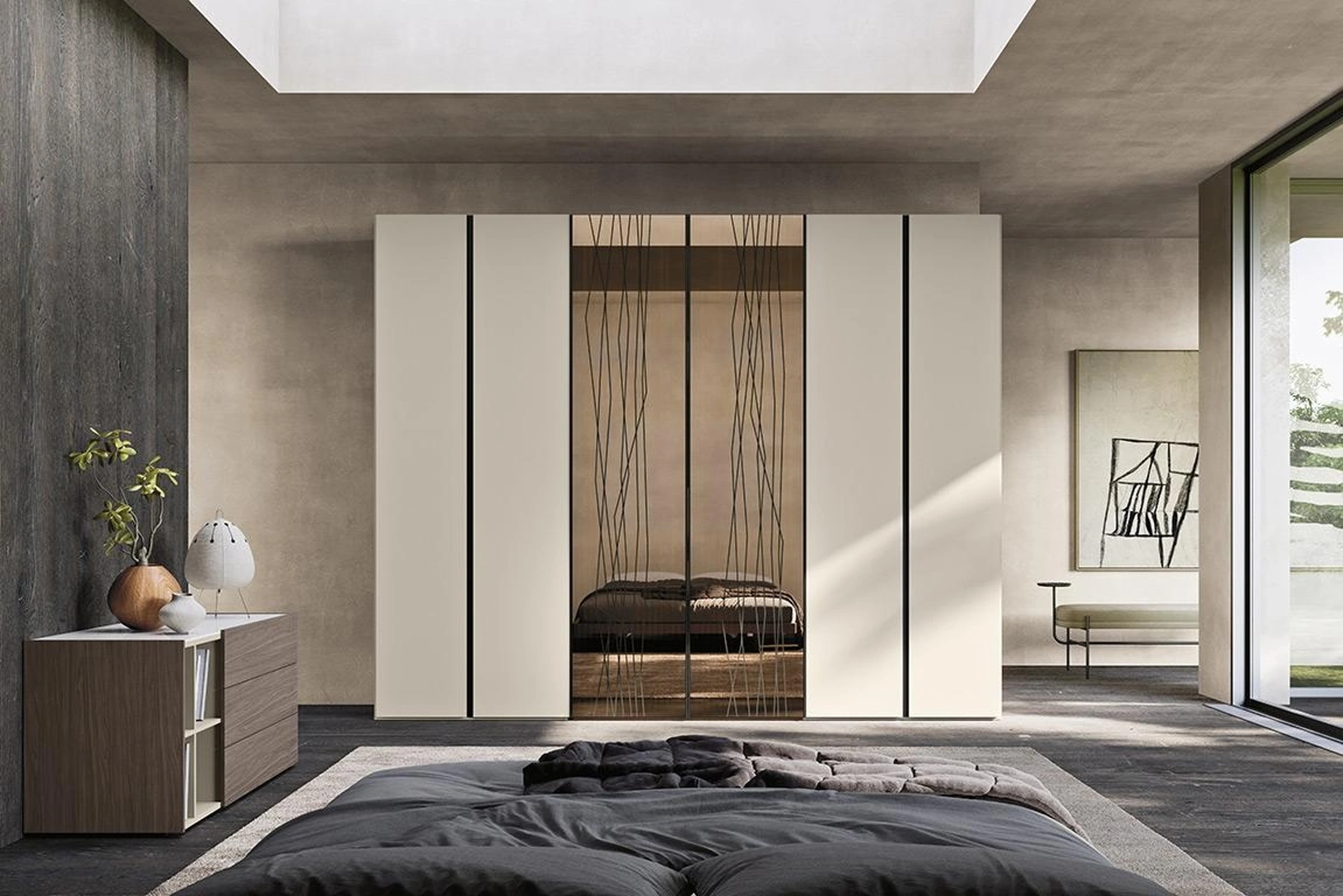 Cerchi un'armadiatura in laccato opaco? Clicca e scopri armadi a muro con ante battenti di Mobilgam.