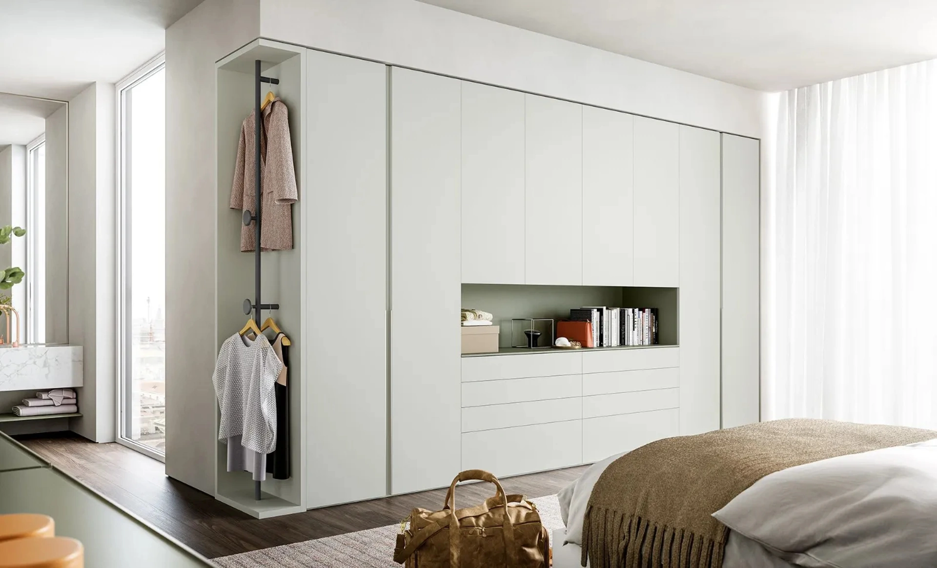 Se vuoi armadi a muro con ante battenti, clicca e scopri l'armadio Slim battente di Dielle Modus in melaminico.