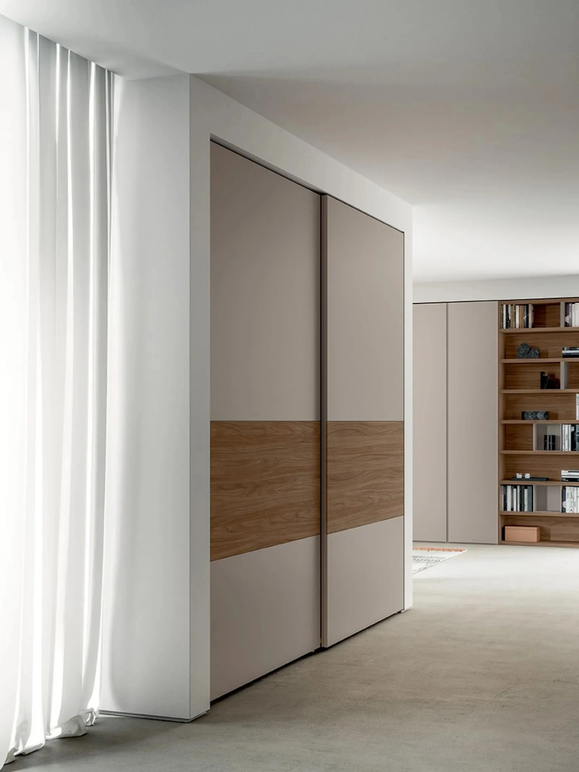 Se vuoi armadi a muro con ante scorrevoli, clicca e scopri l'armadio Strip scorrevole di Dielle Modus in melaminico.