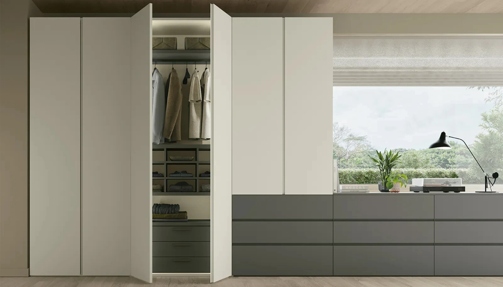 Se desideri armadiature a muro con ante battenti, clicca e scopri l'armadio Gola battente di Dielle Modus in melaminico.