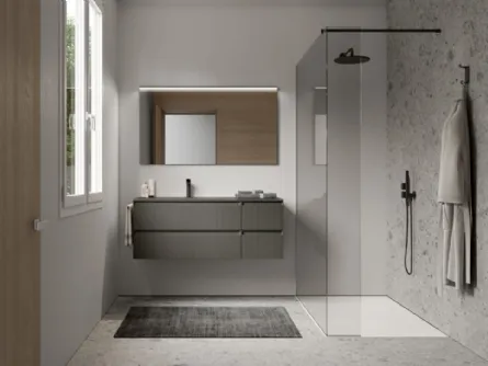 Mobili bagno sospesi Yang 10 di Ardeco: scopri l'Arredo Bagno in laccato opaco moderno e arreda il tuo bagno.