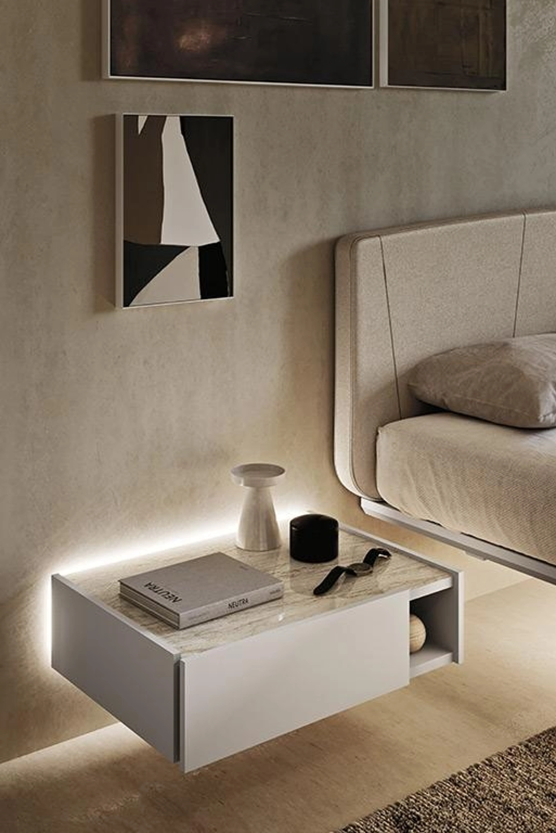 Se vuoi sapere di più sul modello Smart sospeso, clicca e scopri i Comodini e comò Mobilgam ideali per la tua camera da letto.