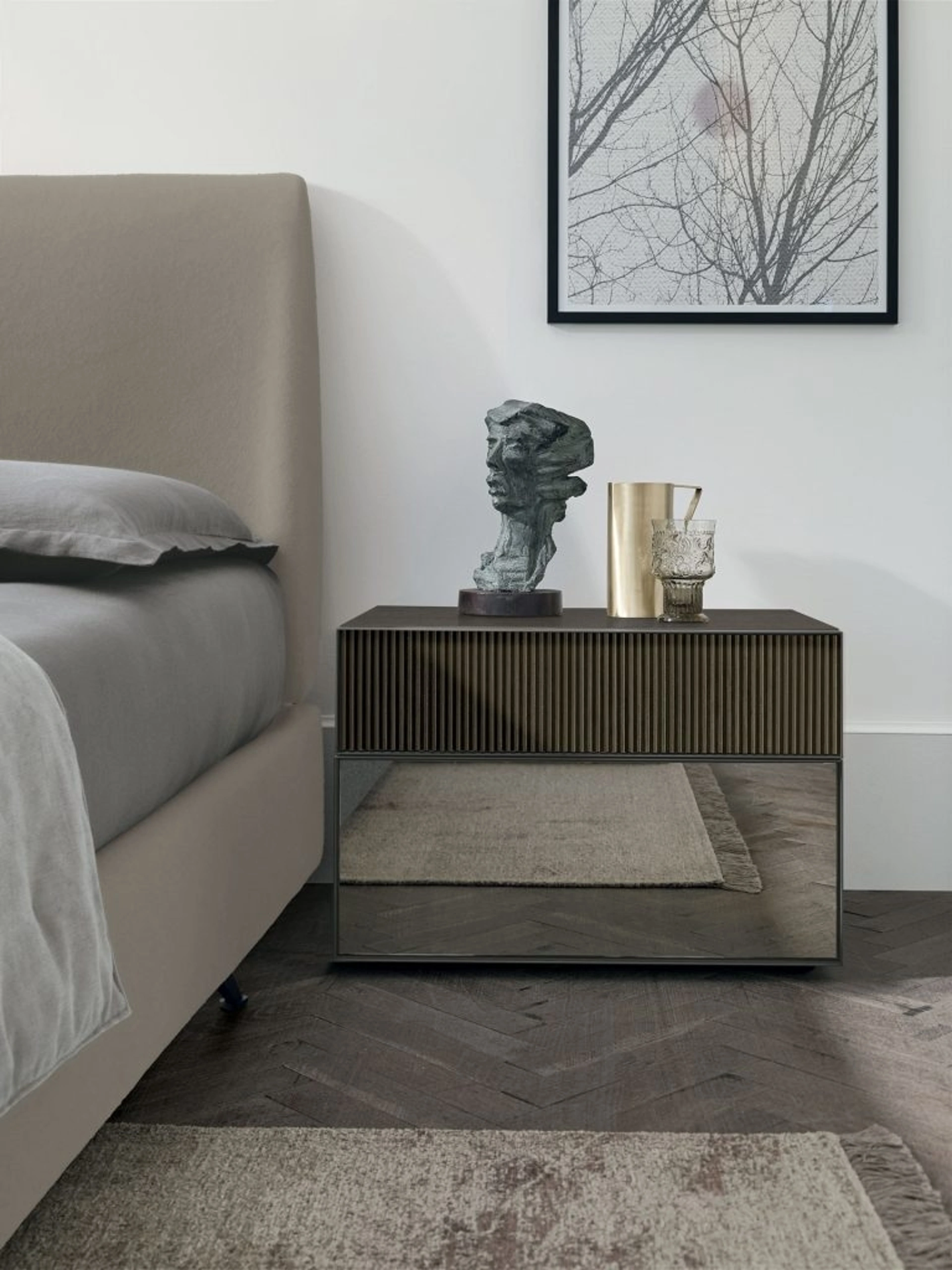 Vuoi progettare la zona notte con Comodini e mobili con cassetti di Tomasella? Eccoti il modello Vinci Gruppo Notte in laccato opaco per spazi design.