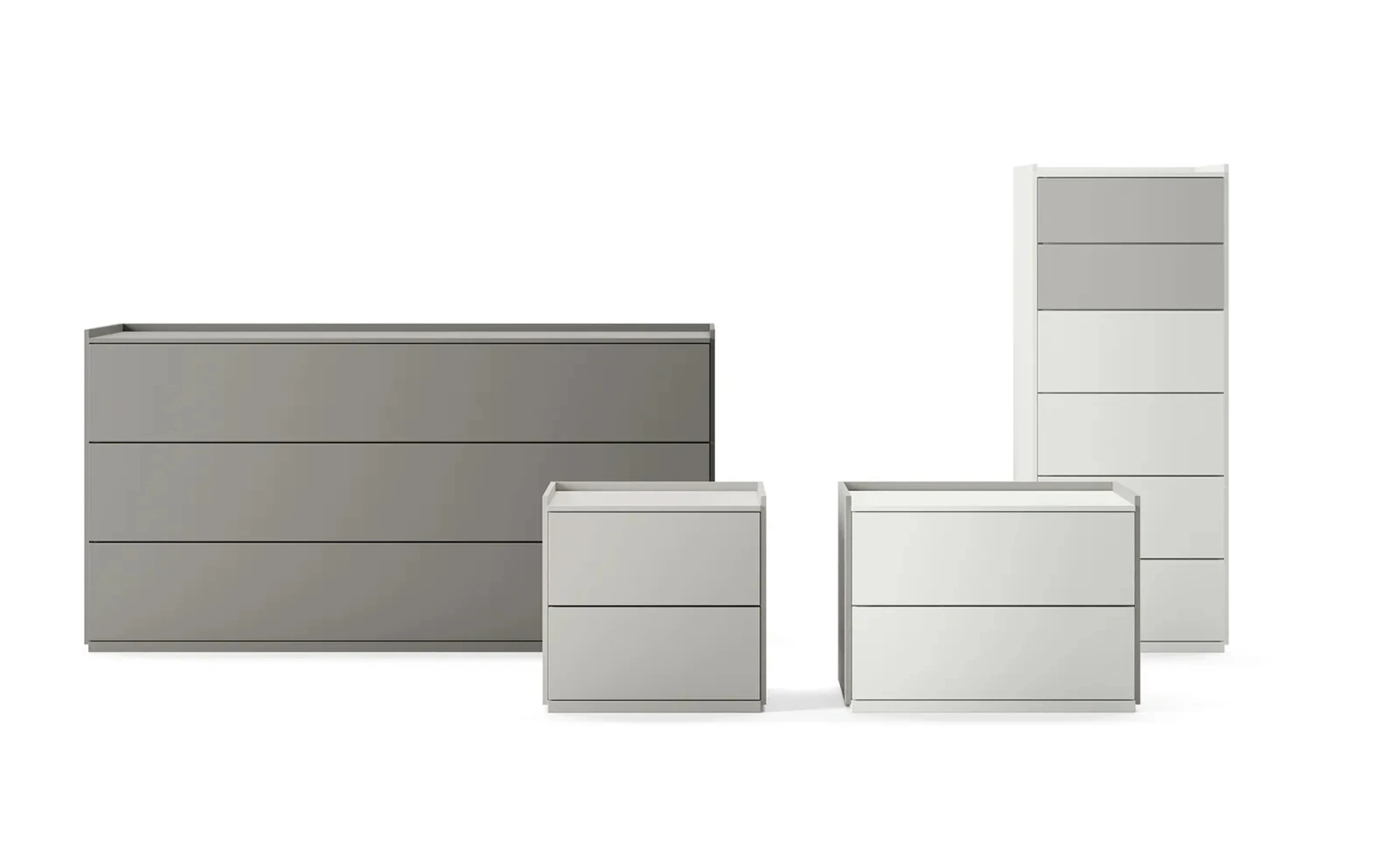 Vuoi arredare la camera da letto con Comodini e mobili con cassetti di Dielle Modus? Eccoti il modello Tray Gruppo Notte in laccato opaco per spazi moderni.