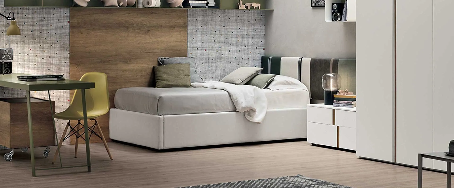 La cameretta dei bimbi include tutto il necessario per garantire uno spazio ideale per i bambini, in cui trovano posto i letti classici come questo. Scopri di più sul modello in tessuto nella fotografia: contattaci per qualsiasi informazione compilando il form qui sotto. Desideri un letto singolo Tomasella per ultimare la camera dei più piccoli? Eccoti il Letto Singolo Diagonal Testiera di Tomasella che appartiene alla nostra serie di letti imbottiti della marca. Una proposta che rispetta le direttive di sicurezza indispensabili per arredare l'ambiente dei piccoli.