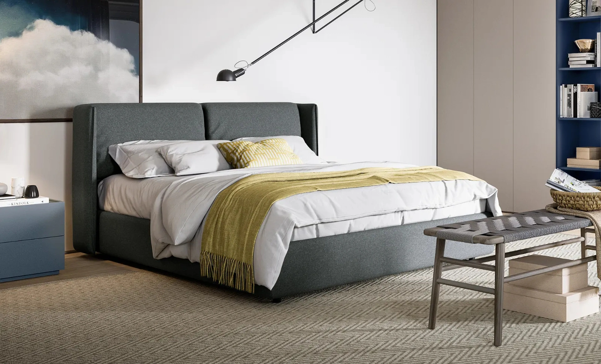 Il letto Nest in tessuto, tra i modelli con contenitore matrimoniali moderni di Dielle Modus, è pensato per garantirti il sonno più profondo.