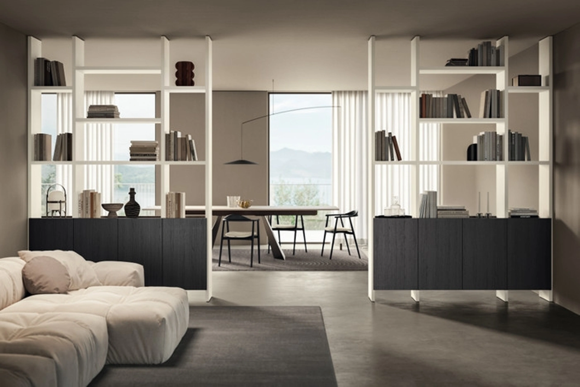 Vuoi rinnovare il soggiorno? Scopri di più sulle librerie moderne divisorie e arreda i tuoi interni con il modello Living Essenza Fluida.