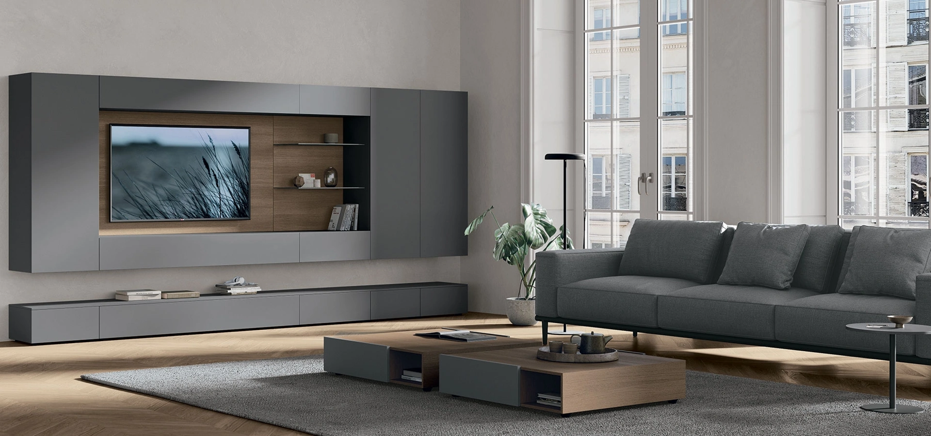 Se vuoi ultimare un living pratico e dinamico dalle linee moderne, ti offriamo la parete attrezzata Atlante UNIT AT143 Tomasella.